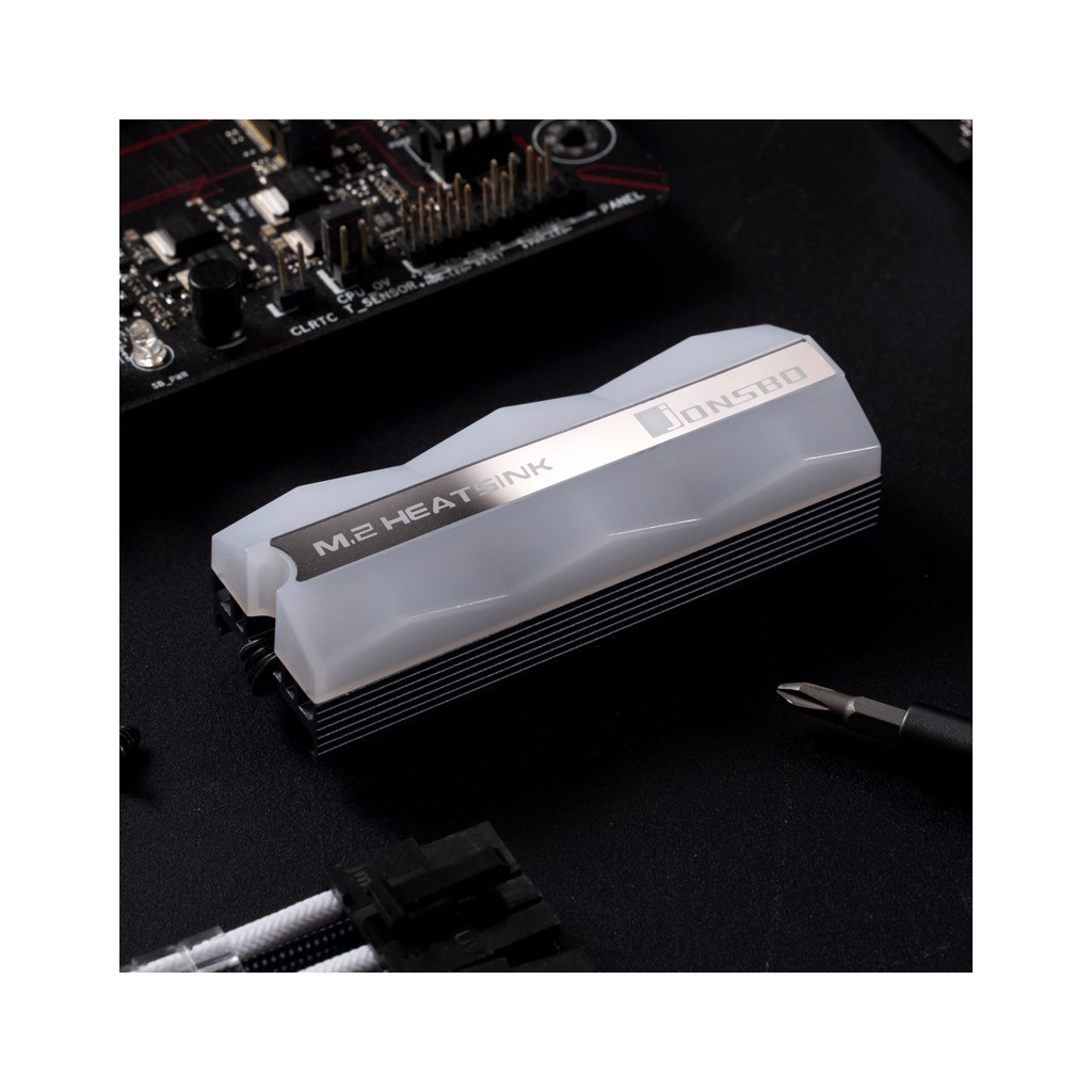 Основная функция любого радиатора – отвод и рассеивание избыточного тепла. JONSBO M2-2 ARGB является пассивным радиатором для установки на твердотельные диски формфактора M.2 NVMe. Эти высокопроизводительные SSD-накопители, в случае плохо организованной воздушной циркуляции в корпусе, часто подвержены перегреву при высоких нагрузках, что приводит к снижению скорости доступа к данным.