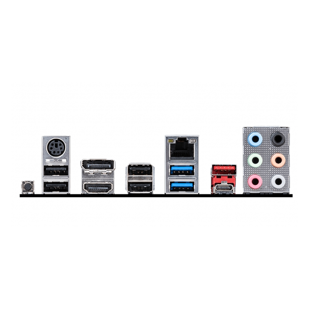 1 x USB 3.2 Gen2 Type-A, 1 x USB 3.2 Gen2 Type-C, 2 x USB 3.2 Gen 1, 1 x RJ45, 4 x USB 2.0, 1 x PS/2, 1 x HDMI, 1 x DisplayPort, 6 x Audio |