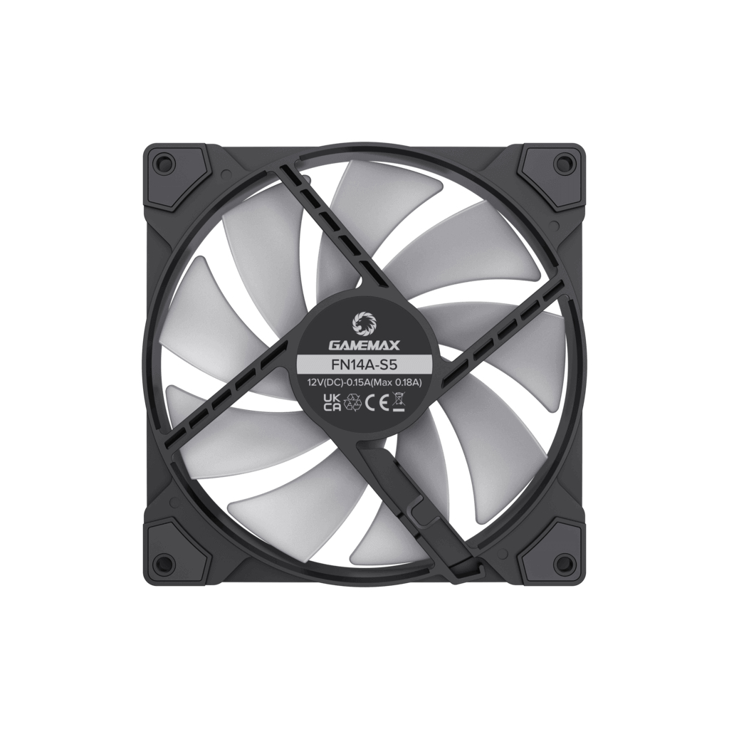 Gamemax FN14A-S5 – высокопроизводительный 140-мм вентилятор ARGB с белой рамкой для охлаждения корпуса ПК. Компонент подключается к 4-контактному разъему ШИМ материнской платы, а интеллектуальная технология контролирует скорость при 600 ~ 1400 ± 10% об/мин в соответствии с температурой. Это обеспечивает тихую работу вентиляторов, максимальный уровень шума составляет всего 30 дБ.